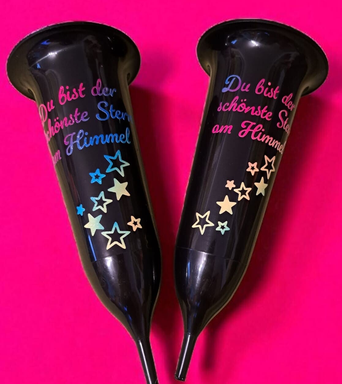 Schwarze Grabvase ca. 29 x 9,8cm mit der Aufschrift "Du bist der schönste Stern am Himmel" oder "Du fehlst"